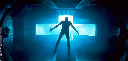 At last they reach the Event Horizon, an eerie, cross-shaped vessel, ominously looming against the cloudy atmosphere of Neptune. Biomonitors (used to search for signs of life) give strange, abnormal readings. The would-be rescuers board the ship, as vast and silent as a deserted cathedral. Within its snaking corridors and containment chambers, they find hints of the night marish fate that overtook its vanished crew -- and discover a horror no one ever imagined, even among the deepest reaches of outer space.