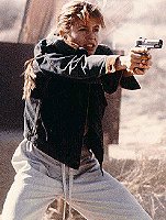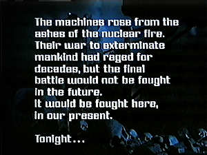 In the future man creates a machine that can think and act for itself to protect mankind. They start out as assassins, but become enemies. When SKYNET decides to exterminate mankind - JUDGMENT DAY - Nuclear War.A cyborg (lifelike robot) from the future, the Terminator (Arnold Schwarzenegger) is sent back to the present - 1984 - to eliminate the woman, Sarah Connor (Linda Hamilton) who will one day be the mother of a son who will lead a rebellion against the evil cyborg leaders of Earth's future. Kyle Reese a young guirelle fighter has also been sent to protect her from the Terminator. Now its an all out battle to save the future.